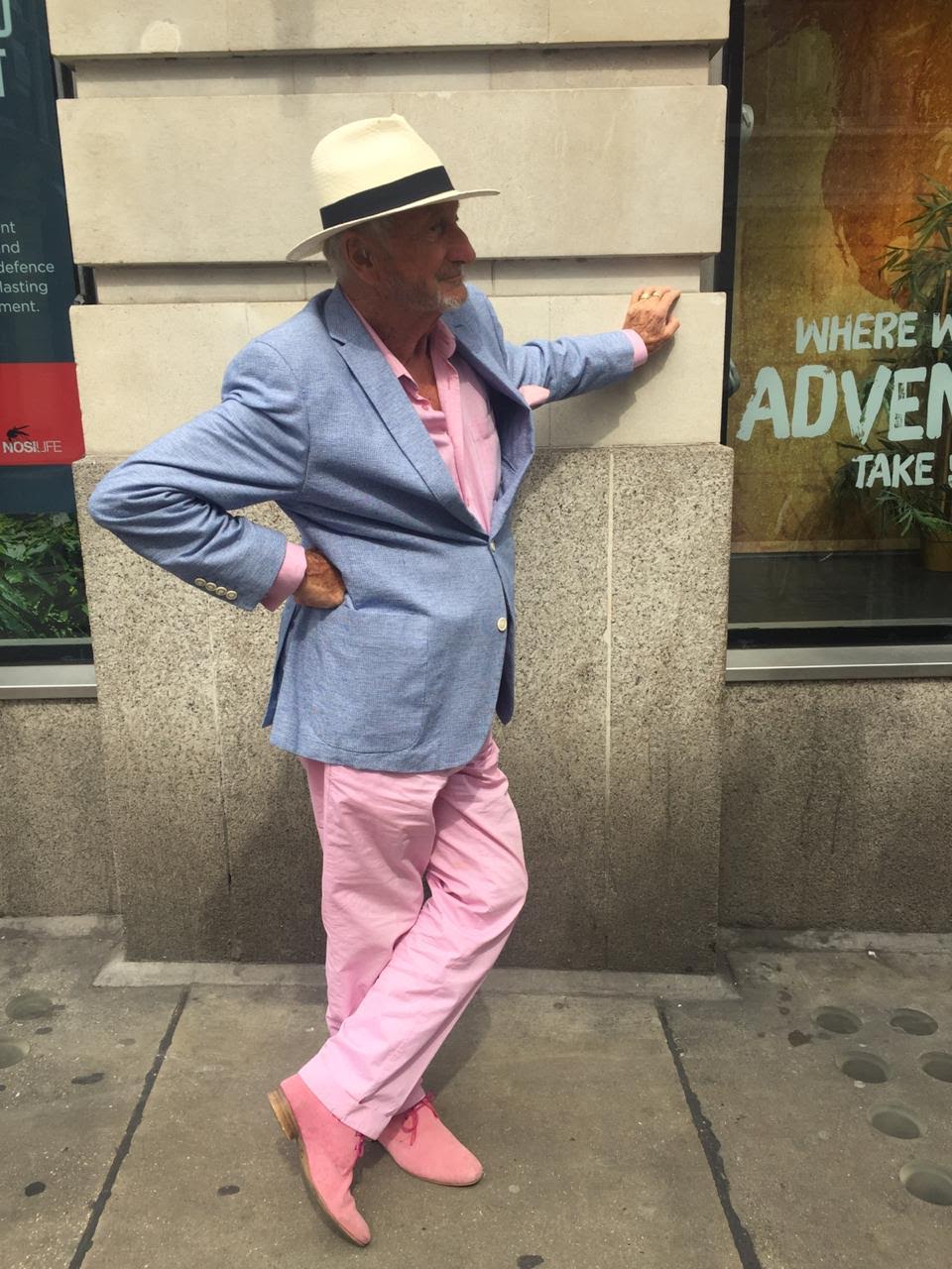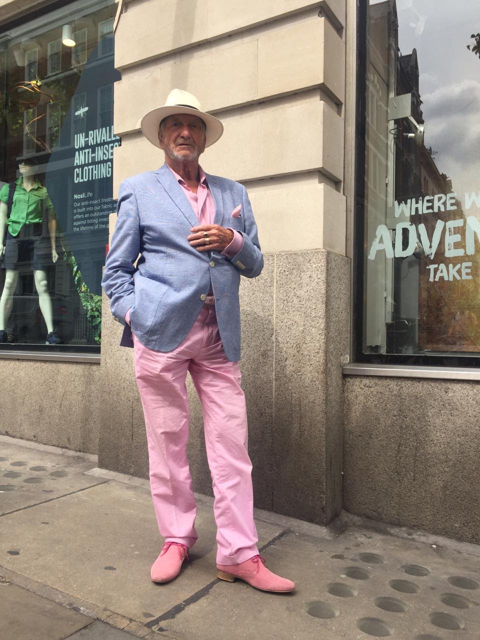 In class, we chose two photos to analyse: one of a younger man in all black and the other of the older man in pastel colours. Using the phrase “English Dandy” as inspiration in our comparisons of these two outfits, we took note of the evolution of menswear. Also noting how Instagram has changed the way in which in people present themselves in their outfits. We observed how jovial and open the older man looked in his photo versus the younger man who looked a bit to posed and self-conscious (i.e. when I asked him for his picture, he immediately took of his jacket and struck a pose of himself looking off into the distance). In this generation, street style appears to be about blending in rather than wearing statement making looks, using accessories to draw attention to your outfit).